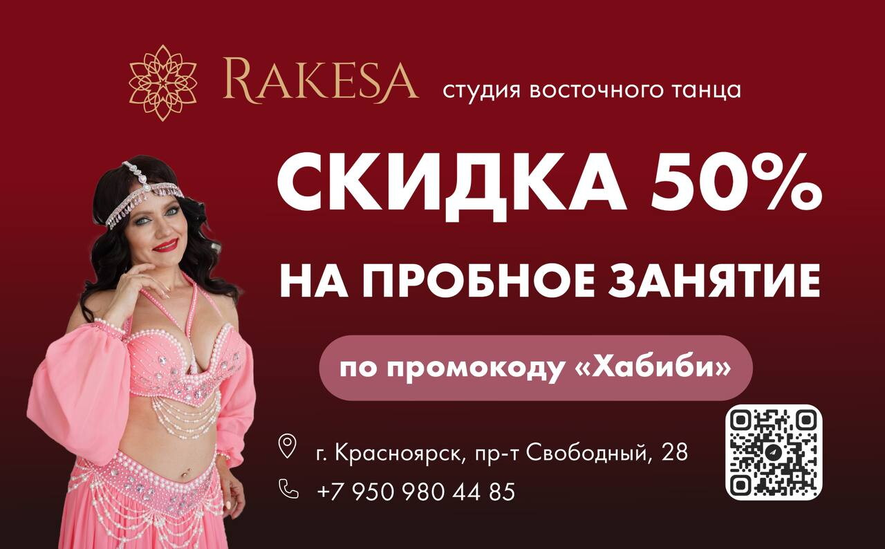 Прекрасная уютная студия с дружным коллективом, замечательный руководитель Татьяна. Занятия восточными танцами - это не только о женском здоровье и красоте, это пластика, это великолепное поднятие настроения и своей самооценки в дружном творческом коллективе Rakesa. Долго искала, где преподают именно восточные танцы, и нашла!