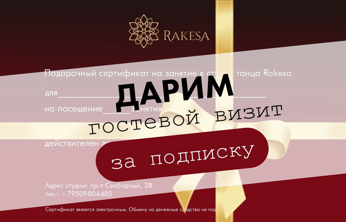 Для меня студия Ракеса, это место наполнения женскими энергиями. Ошибочно считается, что женской дружбы не существует. В этой студии легко можно научиться не только танцевать шикарные женственные танцы, не только укрепить свое женское здоровье, но и узнать о истинной энергии искренней женской дружбы. Спасибо нашей красавице Татьяне за такое шикарное дополнение к тренировкам.